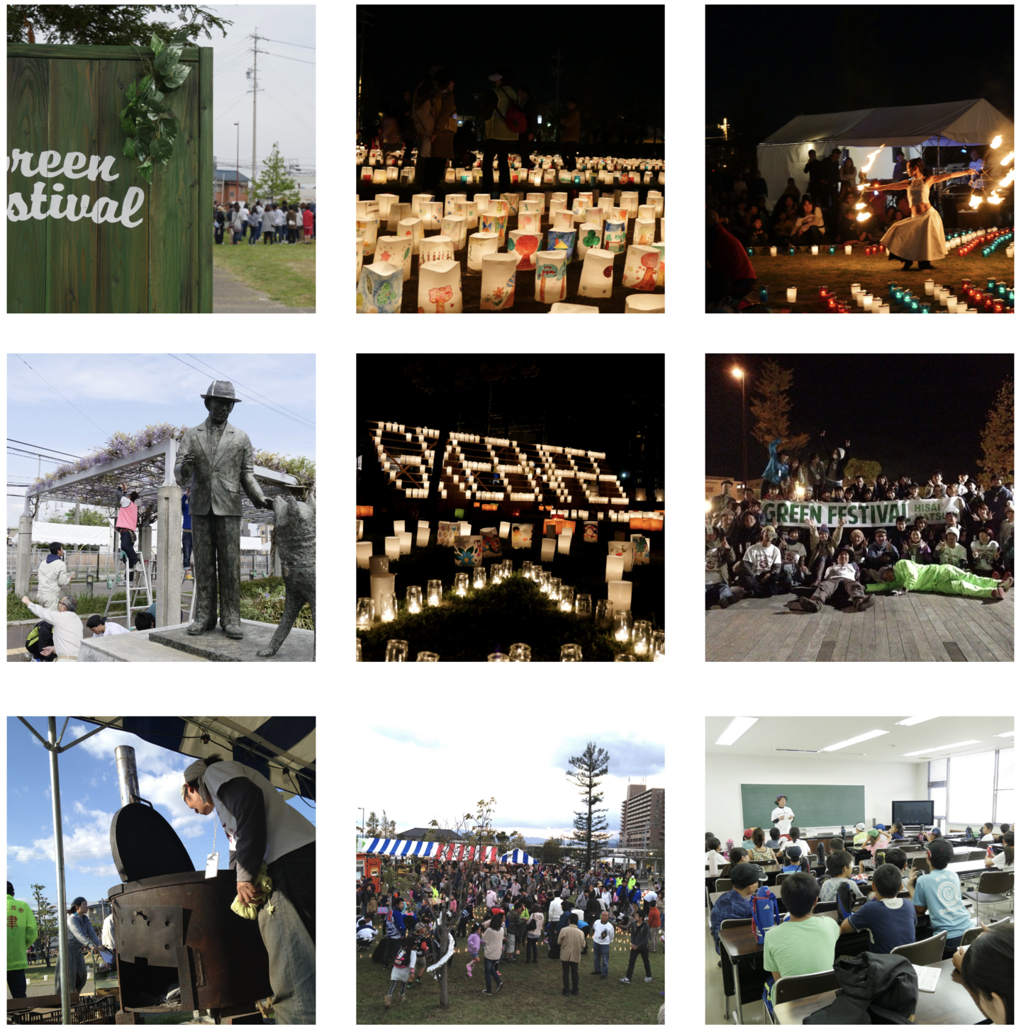 グリーンフェスティバルは年に一度、春に開催。イベントの目玉は、三重県内や久居地域の料理や雑貨、健康的な食材などを集め提供するマルシェ、三重県や久居地域のアーティストやスペシャルゲストによるアコースティックライブ、そして『一想一灯』をテーマにした、数千のキャンドルが灯る夜景が圧巻のキャンドルナイトです。